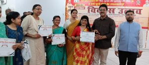 अमेठी। प्रदेश सरकार की सेवा, सुरक्षा और सुशासन की नीति के ऐतिहासिक 8 वर्ष पूर्ण होने के अवसर पर जिला पंचायत रिसोर्स सेंटर गौरीगंज में आयोजित त्रिदिवसीय विकास उत्सव/मेले का आज भव्य रूप से समापन किया गया। त्रिदिवसीय विकास उत्सव/मेले में विभिन्न विभागों द्वारा अपने-अपने विभाग से संबंधित जन कल्याणकारी योजनाओं के स्टॉल लगाकर जन सामान्य को योजनाओं की जानकारी दी गई। इस तीन दिवसीय कार्यक्रम में भारी संख्या में जनसामान्य उपस्थित होकर प्रदेश सरकार के 8 वर्ष की उपलब्धियां एवं संचालित योजनाओं की जानकारी हासिल की तथा उनका लाभ प्राप्त किया। आज विकास उत्सव/मेले के द्वितीय सत्र की थीम सामाजिक कल्याण एवं लाभ वितरण के समापन सत्र में पहुंचे गौरीगंज के विधायक राकेश प्रताप सिंह जी ने विभागों द्वारा लगाए गए स्टालों का अवलोकन किया, वहीं उन्होंने गर्भवती महिलाओं की गोद भराई करने के साथ ही 6 माह के बच्चों को प्रथम बार अन्नप्राशन कराया। त्रिदिवसीय विकास उत्सव/मेले के समापन के अवसर पर मा. विधायक गौरीगंज ने कार्यक्रम के सफल आयोजन के लिए सभी अधिकारियों कर्मचारियों को बधाई दी तथा कहा कि शासन की योजनाओं और नीतियों को जन-जन तक पहुंचाना हम सब की जिम्मेदारी है अधिकारी/कर्मचारी गांव का भ्रमण करें और पात्र लोगों को योजनाओं का लाभ दिलाए सभी लोग अपनी-अपनी जिम्मेदारी को समझें और गंभीरता पूर्वक निर्वहन करें, सरकार की आपसे अपेक्षा है कि पात्र लोगों को योजनाओं का लाभ मिले उसी क्रम में हम सभी को मिलकर कार्य करना होगा चाहे सामूहिक विवाह योजना का लाभ हो, पेंशन हो, आवास हो एवं अन्य कोई योजना हो सभी योजनाओं का लाभ पात्र लोगों को मिलना चाहिए इस अवसर पर जिलाधिकारी निशा अनंत ने कहा कि सेवा, सुरक्षा और सुशासन के 8 वर्ष हो गए कैसे उत्तर प्रदेश का चेहरा बदल रहा है यह आप सभी लोग देख रहे हैं महाकुंभ में करीब 66 करोड लोगों ने पवित्र संगम में स्नान किया इससे संबंधित वीडियो क्लिप यहां पर दिखाई गई साथ ही प्रदेश सरकार के 8 वर्ष के कार्यकाल की उपलब्धियां से संबंधित वीडियो क्लिप भी दिखाई गई जिसे आप सभी लोगों ने देखा। समापन के अवसर पर जिला विकास अधिकारी वीरभानु सिंह, मुख्य चिकित्सा अधिकारी डॉ अंशुमान सिंह, पीडी डीआरडीए ऐश्वर्य यादव, डीसीएनआर एलएम प्रवीणा शुक्ला, डीसी मनरेगा शेर बहादुर, बीएसए संजय तिवारी, डीपीआरओ मनोज त्यागी, खादी ग्रामोद्योग अधिकारी महेंद्र मिश्रा, प्रभागीय वनाधिकारी रणवीर मिश्र, डीपीओ आईसीडीएस संतोष श्रीवास्तव, डीपीओ प्रोबेशन अनिल मौर्य सहित अन्य संबंधित अधिकारी, लाभार्थी व जन सामान्य उपस्थित रहे
