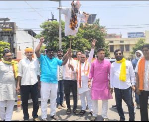 खिलाफ जोरदार प्रदर्शन किया। प्रदर्शन के दौरान अखिलेश यादव का पुतला दहन किया