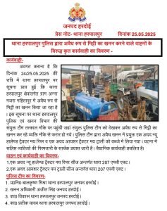 ब्यूरो अकरम उस्मान, हरदोई हरदोई जनपद के हरपालपुर थाना क्षेत्र में अवैध मिट्टी खनन के खिलाफ पुलिस और खनन विभाग की संयुक्त टीम ने बड़ी कार्रवाई की। मिली सूचना के आधार पर बीती रात ग्राम अन्ना मजरा महितापुर में छापा मारा गया, जहां अवैध खनन किया जा रहा था।