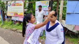 जब उन्होंने जाम हटाने की कोशिश की तो चुंचुरा थाने की दो महिला कांस्टेबल मौके पर पहुंच गईं। आरोप है कि उसी समय भाजपा महिला मोर्चा की कुछ कार्यकर्ताओं ने दोनों महिला पुलिसकर्मियों को सिंदूर लगाया और भाजपा कार्यकर्ताओं ने उनके गालों और सिर पर सिंदूर लगाया। दोनों महिला पुलिसकर्मियों ने आरोप लगाया कि उन्हें जबरन सिंदूर लगाया गया। उधर, महिला भाजपा कार्यकर्ताओं ने दावा किया कि पुलिस अधिकारी स्वेच्छा से आए और सिंदूर लगाया, जिसके बाद स्थिति गरमा गई। पुलिस और महिला कार्यकर्ताओं के बीच तीखी नोकझोंक शुरू हो गई। कुछ देर तक तनाव जारी रहा।