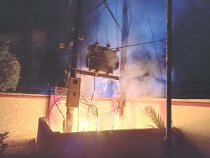दमकल विभाग की टीम ने कड़ी मशक्कत के बाद करीब दो घंटे में आग पर काबू पाया। घटना रात करीब 11 बजे की है, जिसके कारण नगरीय क्षेत्र में विद्युत आपूर्ति पूरी तरह बाधित हो गई। मंगलवार सुबह तक बिजली विभाग के कर्मचारी तारों को बदलते नजर आए।