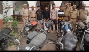 जनपद सुलतानपुर की कोतवाली नगर पुलिस ने एक बड़ी सफलता हासिल की है। पुलिस अधीक्षक श्री कुँवर अनुपम सिंह के निर्देशन में चलाए जा रहे अपराधियों की धरपकड़ अभियान के तहत, बुधवार को अमहट चौराहे पर वाहनों की चेकिंग के दौरान चार शातिर चोरों को चोरी की 10 मोटरसाइकिलों के साथ गिरफ्तार किया गया।